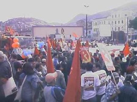 The MPD is the legal, parliamentarian front for the PCMLE. They backed Correa up until this year, but since they have a large membership in the public sector unions and the student organizations, they withdrew their support after Correa began his attack on the unions and on university autonomy. One of the leaders of the FEUE, a student organization aligned with the PCMLE, has been in jail on “terrorism” charges for 10 months. Marcelo Rivera is currently on hunger strike, and is considered by the MPD and FEUE to be a political prisoner. Over 100 social movement leaders have been arrested on trumped up “terrorism” charges.