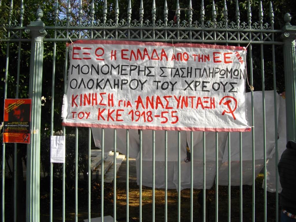 – This party immediately distanced itself from the protests. Not only did it not support them, but leading KKE cadres spoke with derogatory words about the movement; they said, for example, that it is not politically mature, that it does not pose a threat to the political system etc. KKE does not support withdrawal from the EU, even if sometimes they claim the opposite in foreign media, because it has totally accepted the strategic decision of the Greek capital to keep the country within this imperialist union. The KKE General Secretary, A. Papariga recently stated that: “A solution outside the Euro and return to the drachma in the present circumstances would be catastrophic” (Rizospastis 31/5/2011, p.6., can also be found here).