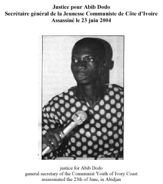 On June 24, 2004 the General Secretary of Communist Youth of Côte d’Ivoire, Habib Dodo, was murdered by Student Federation [FESCI] of Côte d’Ivoire activists.