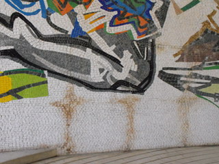 A once modern structure, constructed 30 years ago, it boasts Macedonia’s largest complete mosaic, a three-year effort by artist Petar Mazev.