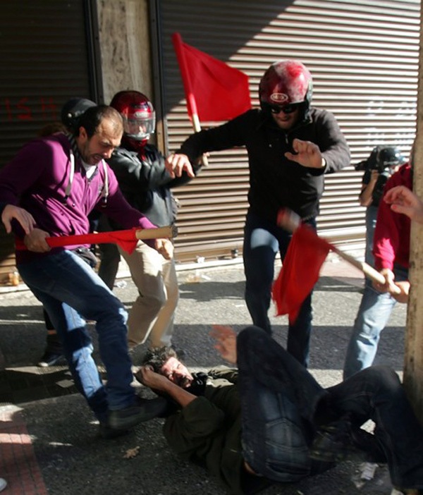 In the case of the sailors’ strike, the trade union leaders of PAME, apart from breaking the strike, they also organized separate rallies that weren’t simply divisive but were, first and foremost, strikebreaking clearly aiming at the split of the sailors unity and the weakening of their struggle. They were strikebreaking rallies in complete coordination with the governmental strikebreaking mechanisms, in the framework of “K”KE-ND cooperation. Their attitude was so shamelessly pro-governmental that, while the barbarous police was attacking the rally held in solidarity to the tailors, the PAME reformist Manusogiannakis appeared on television not to condemn the fascist police assault but to distance the position of PAME from the event stating that the people beaten up by MAT (the infamous special police forces) didn’t belong to PAME!!!