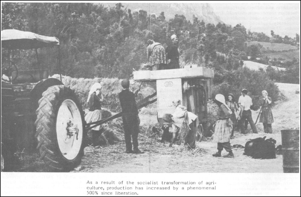 Agriculture: Before liberation, Albania was still at the stage of the wooden plow. The farmland was fragmented into tiny plots worked by the most backward means. Albania could not produce enough food to feed its own people.
