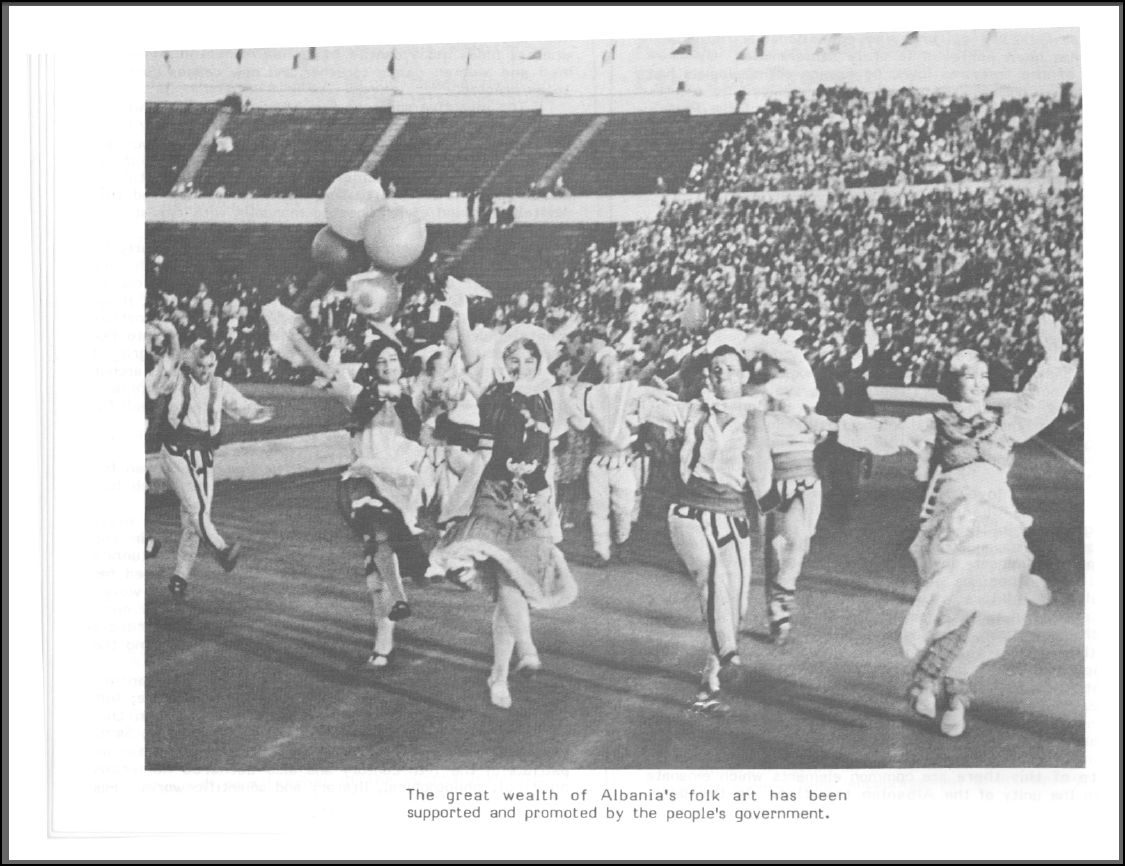 The people’s government has made great efforts to preserve and record the traditional music, dance and costumes of the Albanian people. It organizes regular folklore festivals and has published and recorded thousands of traditional verses, prose, proverbs and instrumental music. At the same time it is delving into the roots of harmful and reactionary customs which degraded women and those pertaining to the system of patriarchal life because these have acted to impede the development of society and it is important to smash their idealistic reactionary philosophical basis.