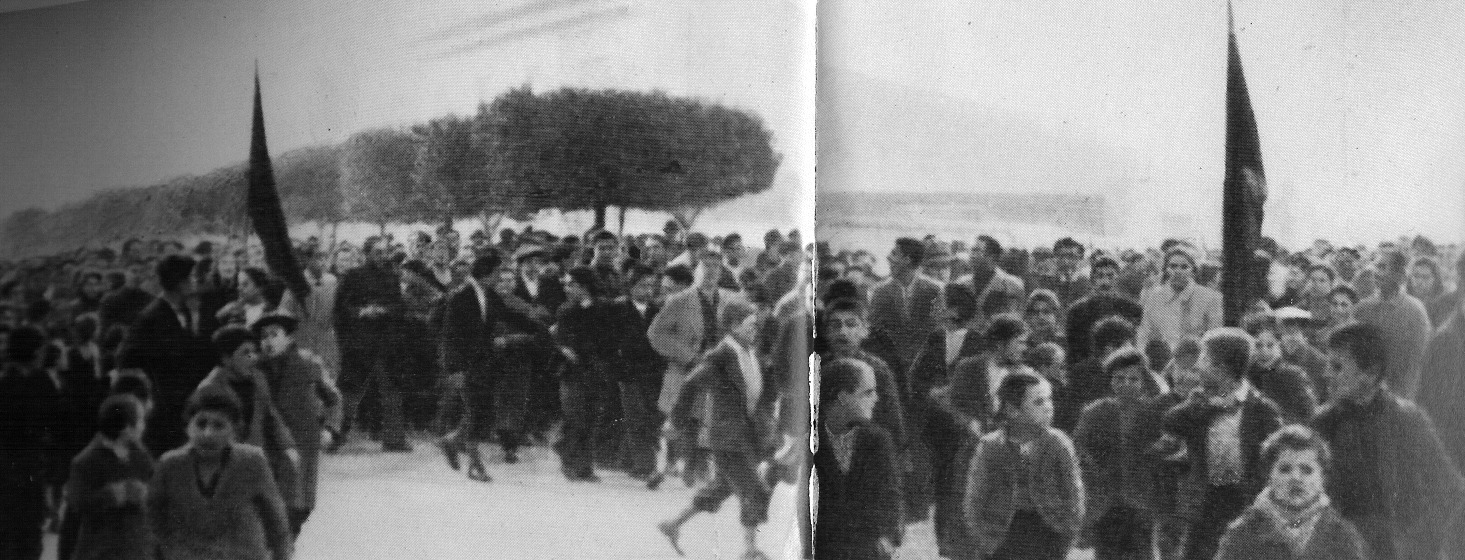 (Above) Anti-fascist demonstration in Tirana where Nexhmije saw Enver for the first time. They would later meet in a Partisan safehouse.