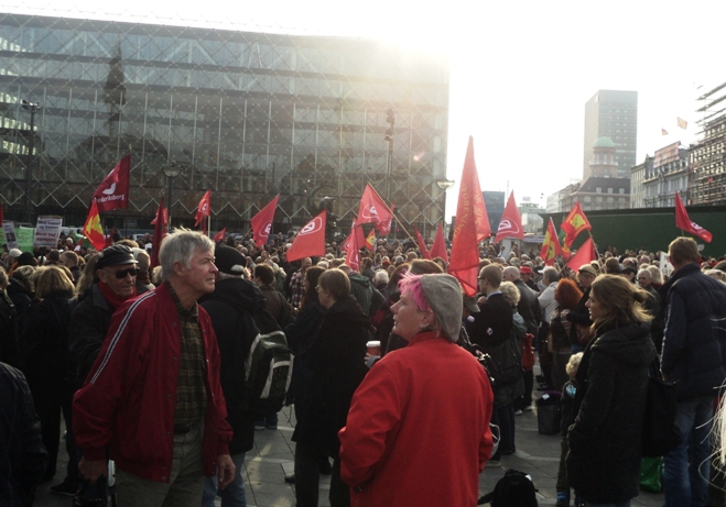 Thousands demonstrated and protested at the opening of the Folketing the 2. October on the 40. anniversary of the fateful referendum on Danish membership of EU. In Copenhagen there was a protest in front of the Labour Court and in a great demonstration from the City Hall Square to Christiansborg [1]. Also in Aarhus there was a protest meeting.