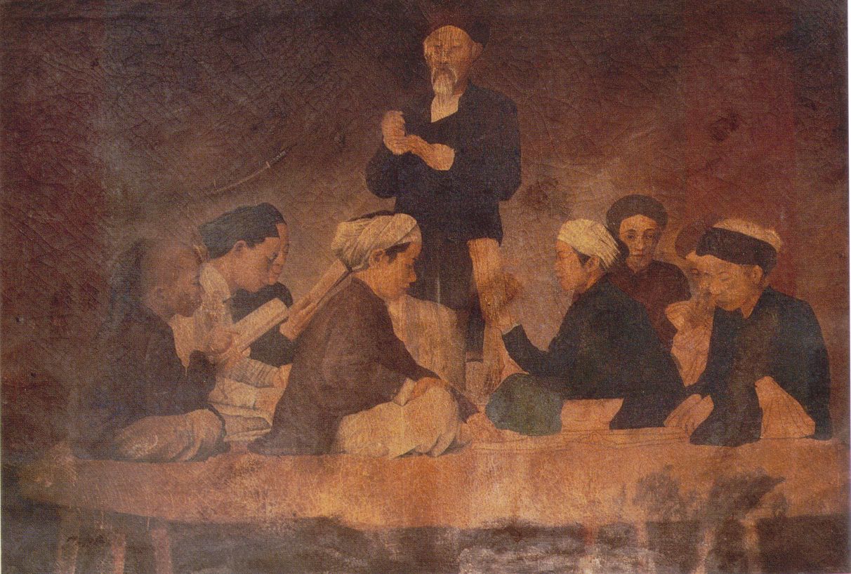 The former depicts scholars debating merits of literary works, a theme not dissimilar from that of the traditional Chinese inspired Vietnamese artists. But the literature being debated now was slowly becoming more likely to do with modern liberation themes, than of poems on the moon.