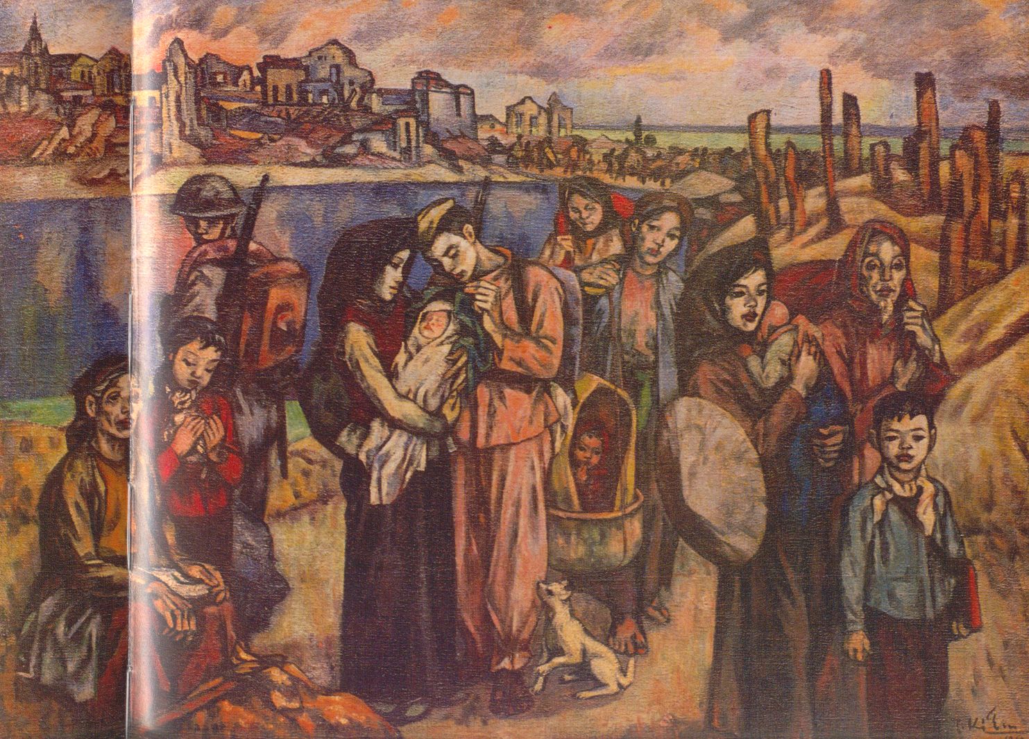 The sheer plethora of art produced regarding the war cannot be quickly précised in a short article, and these examples from the War Museum should suffice. But three pictures from the Fine Arts Museum are worth showing with a little discussion also. So these again revert to the fine arts tradition of using lacquer, and again do so in an ingenious manner.