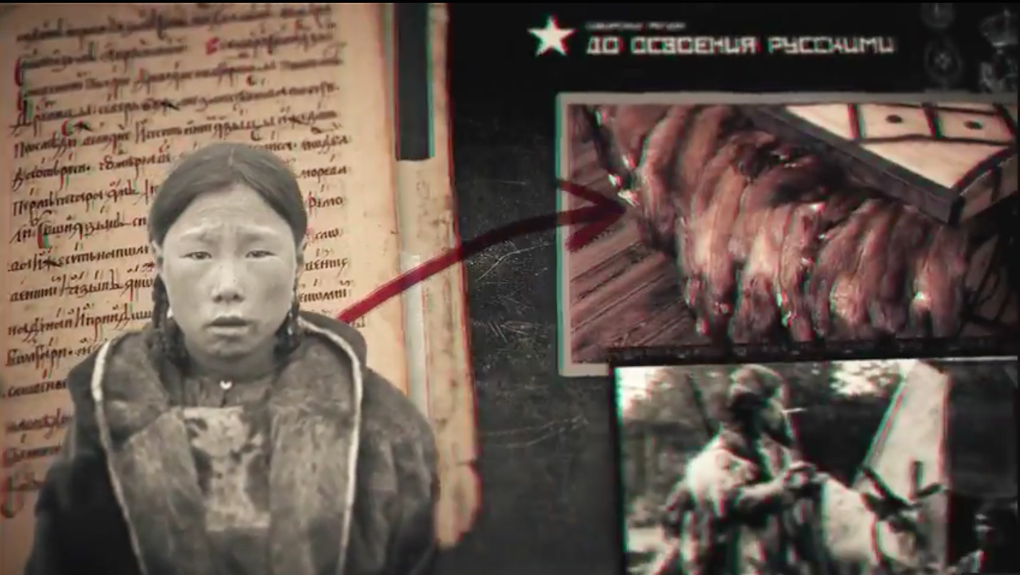Turning his eye to Yermak’s 16th century conquest of Siberia, the video goes full on Heart of Darkness by arguing that now they (whoever they might be) produce oil, gas and “other useful stuff, have “schools and hospitals” and can’t sell women for “a bundle of sable skins” – all thanks to Russian colonial expansion.