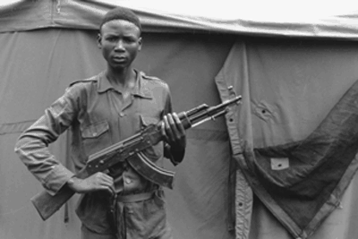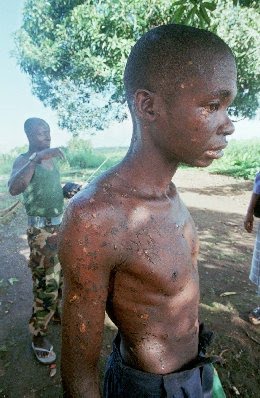 Between 1991 and 2000, four percent of the diamonds that made it to the U.S. were conflict diamonds, according to the DiamondFacts.org website (2). The images in this essay depict the innocent who are caught in the middle of the conflicts that raged in the areas of Sierra Leone and Angola; from the women to the young children, either forced to dig in the pits, or recruited by the rebel groups. The image of the young boy whose hands have been hacked off is just one of some 20,000 innocent people who the RUF tortured as protest to a 1996 plea for a peace movement. The majority of the women have been raped before being tortured, as proof is shown in the image of the 45-year-old woman with burn scares on her bare back. The images of young boys wielding AK-47 assault rifles is a shocking testimony that these rebel groups are recruiting soldiers at a very young age in order to brainwash them to help support their bloodthirsty cause.