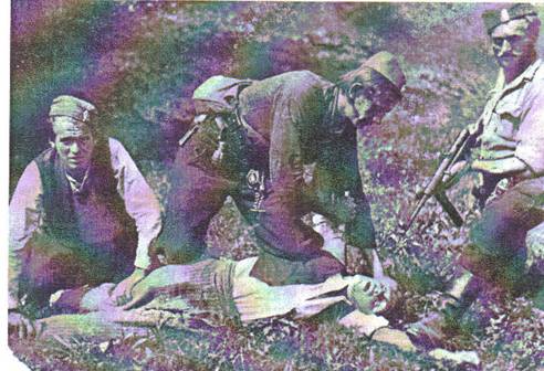 It is necessary to stress that Croatian and Bosniak anti-fascists, activists, fighters, and members of NOP were killed without exception if captured by Chetniks. In this way, from May 25 until June 15, 1942, the Dinara Chetnik division alone in the battle against the Partisans, counted “over 500 Partisan corpses, mostly Croatians”. Some time later, in 1942, near Rujiste, the Chetniks captured 23 Croatian Partisans and shot them, for which deed they received 10,000 liras reward from the Italians; yet another method which the Italians used to instigate them to crime. Djujic`s report to D. Mihailovic of December 21, 1943, stated that in the battle against the Partisans, 140 Partisans had been captured, of whom seven were Serbian and the rest Croatian. The Serbians were released and the Croatians were all slaughtered and thrown into a pit. At that time, the commander of the Podrinje Chetnik Brigade wrote in his report, among other things, the following: “I shot 5 Partisans because they were “Turks”…”( that is, Bosniaks.). From other documents, it may be seen that the majority were representatives of various anti-fascist organizations of NOP, as well as the wounded who were without adequate military protection, which the Chetniks used to their advantage.