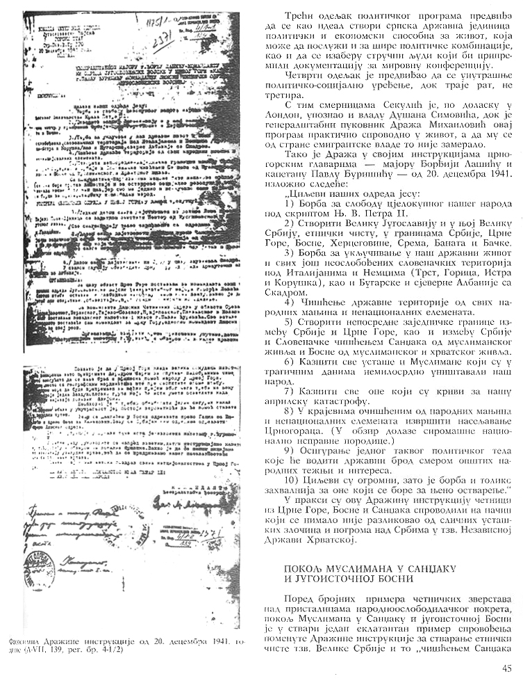 Chetnik supreme commander Draža Mihailović issued the following “Instructions” to his commanders on 20 December 1941 outlining, among other things, the cleansing of all non-Serb elements in order to create a Greater Serbia: