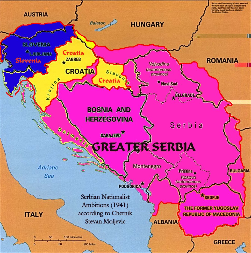 - The creation of direct common borders between Serbia and Montenegro, as well as Serbia and Slovenia by cleansing the Muslim population from Sandžak, and the Muslim and Croat populations from Bosnia and Herzegovina;